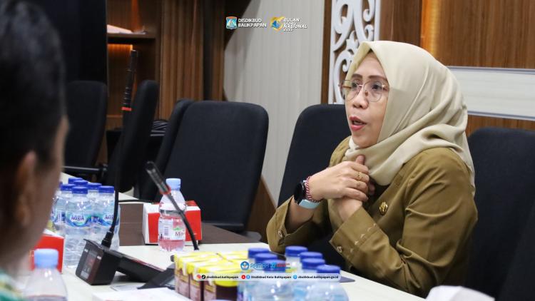 Plt. Sekretaris Dinas Pendidikan dan Kebudayaan Kota Balikpapan, Emmy Mulyani, menerima kunjungan kerja Dewan Pendidikan Kabupaten Balangan, Kalimantan Selatan, pada Selasa, 11 November 2025 di Ruang Rapat Sekretariat Disdikbud Balikpapan.